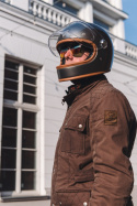 Tekst zespołu Maanam idealnie oddaje ducha naszej pierwszej w pełni turystycznej kurtki motocyklowej. Kurtka turystyczna "Walker" to ponadczasowa stylistyka, stworzona na wzór klasycznych brytyjskich kurtek trophy z lat '40. Została wykonana z elastycznej, wysokiej jakości woskowanej bawełny. Zawiera podpinkę termiczną oraz wodoodporną membranę, które zapewnią Ci komfortową jazdę w chłodniejsze dni. Kurtka w standardzie posiada pięć piankowych protektorów - dwa na łokcie, dwa na barki i jeden na plecach. Posiada pięć kieszeni zewnętrznych, w tym jedną na plecach - jak przystało na klasyczną kurtkę w stylu trophy. Do tego posiada trzy kieszenie wewnętrzne. Ponadto przy pomocy regulowanych pasków znajdujących się na wysokości talii idealnie dopasujesz ją do swojej sylwetki. Zapinana na zamek błyskawiczny YKK® oraz napy.